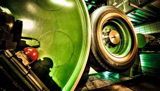 您輪胎的橡膠中混合了高達(dá)30種原料,原料的比例取決于輪胎的性能目標(biāo)。它是由多種類型的橡膠,填充料及其它原料構(gòu)成,在被稱為班伯里密煉機(jī)的巨型攪拌機(jī)中把它們混合在一起,生產(chǎn)出一種將用于壓延的黑色的粘性的膠料。壓延