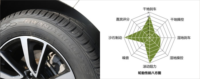 首先,在干濕地繞樁測(cè)試中,GRANDTREK PT3的濕地操控極限稍?xún)?yōu)于干地操控極限,胎面上四條縱向較粗的溝槽和繁多的橫向溝紋保證了良好的排水性能。其次,在砂石路面剎車(chē)測(cè)試中,表現(xiàn)同樣優(yōu)秀。最為突出的是,得益于SUV專(zhuān)用低發(fā)熱高密度橡膠配方,GRANDTREK PT3的滾動(dòng)距離贏得全場(chǎng)第一,在節(jié)省燃油方面性能亮眼。